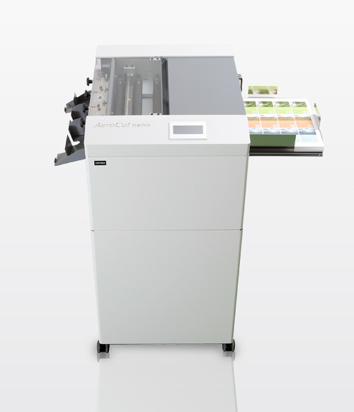 Tu primer AeroCut. La cortadora de tarjetas más confiable y versatil. La AeroCut Nano es la solución ideal para las imprentas digitales que producen tarjetas de múltiples tamaños ya que puede manejar papeles de hasta 330x448mm con un gramaje de 350g/m2.